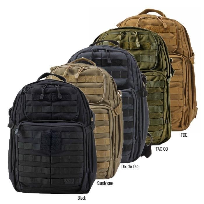RUSH24™; 5.11'in en popüler taktik sırt çantası modellerinden biridir. Üst düzey depolama kapasitesini sağlanmak için tasarlanmıştır ve kullanıcısınız yavaşlatmaz. Geniş ana bölmesinde, küçük eşyalarınızı düzenli tutması için yapılmış üç tane fileli cebi bulunur. Pedli/yastıklı hidrasyon (su orbası) cebi mevcuttur. Polar astarlı güneş gözlüğü cebi sayesinde gözlüğünüzü korumaya yardımcı olur. Çift fermuar sistemi sayesinde, çift taraflı saklama bölmesi olanağı sağlar. İç kısımda bulunan ve ihtiyaç duyulduğu taktirde genişletilebilen sıkıştırma kordonulu cebi bulunur. MOLLE/SlickStick sistemi sayesinde eşyalarınızı düzenli şekilde depolamanızı sağlar.