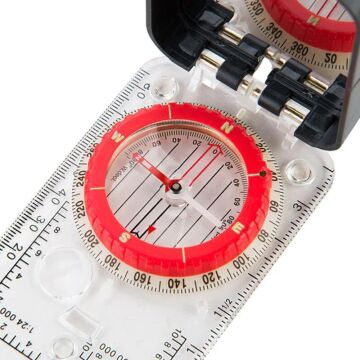 Dahili aynası ve gözetleme camı olan bir kapağı olan popüler bir temel pusula/pusula. Şeffaf tasarımı sayesinde harita üzerinde yönlendirme için idealdir. Her zaman elinizin altında olması için bir kordon dahildir.