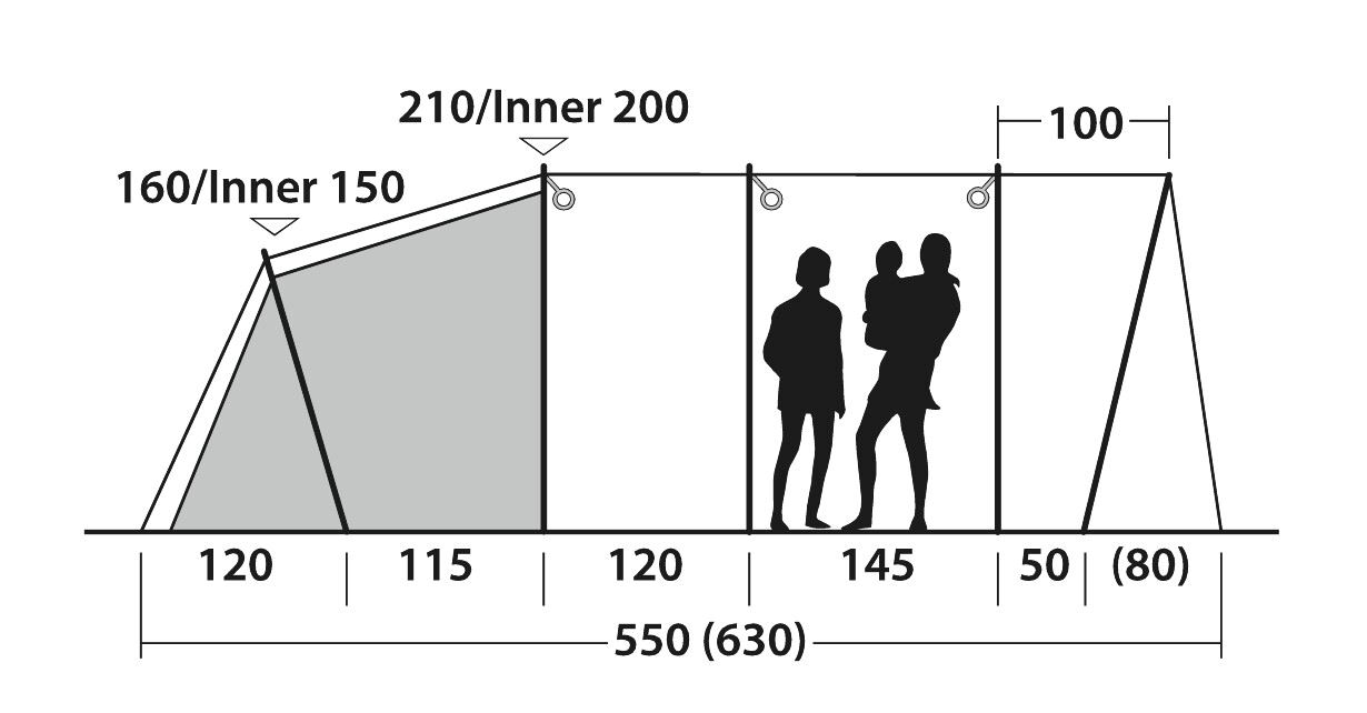 Çadırlarımızı bir konfor uyku derecesi ile tanımlıyoruz - endüstri standardı her yatak odasında kişi başına 60 cm'ye izin veriyor - bunun yeterli olmadığını biliyoruz ve hava yataklarının gelişiyle Outwell uyku konforunun 70-80 cm olduğuna karar verdik. kişi başına.
